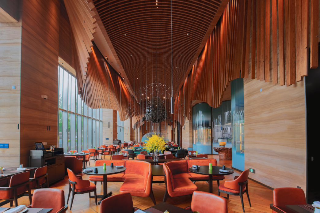 酒店内共有2间餐厅、糕点屋和酒吧,特色鲜明地打造出食艺同享的视觉艺术盛宴。意烁Fiamma餐厅作为牛排海鲜烧烤餐厅,将火焰视为灵魂,餐厅中央的水晶艺术等以“绿野仙踪”为灵感,红色和绿色在这里碰撞出跃动的火花。