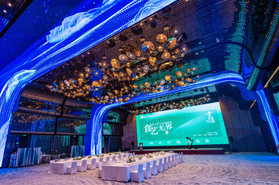 美高梅大宴会厅足有1200㎡,巨幅曲面LED屏从天花板缓缓垂到地面,仿佛海浪轻卷的沙滩,午夜蓝水晶灯灵动闪耀,如同在夜色里,海岸边冲向天际的灿烂绽放的烟花。另外,会议场地另包含2间会议室、1间董事会议室、1间贵宾室、1间新娘房及户外婚礼亭,可以定制不同主题、规模的会议活动、宴会、婚宴等。