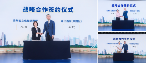 大会最后,以锦江酒店(中国区)与贵州省文化和旅游厅等投资合作伙伴的重磅签约画上圆满句号。
