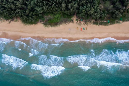 三亚沿海区域,以三亚凤凰机场为起点往南,依次分为三亚湾、亚龙湾、海棠湾。