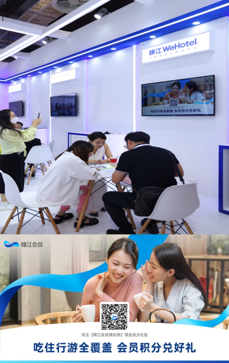 展会现场,锦江国际旗下全球酒店互联网平台—锦江WeHotel向观展嘉宾介绍了拥有近1.9亿会员,覆盖锦江全产业链的锦江会员生态体系,并邀请下载“锦江会员”APP和关注“锦江会员俱乐部”公众号,领取新人专享礼包和优雅生活大礼包,体验由“锦江”提供的酒店、旅游、预制菜、车服务等在线预订服务,以及积分兑换、权益查询、在线客服等全链条服务。锦江会员还可参加每月15日的“会员日”品牌活动,汇聚锦江国际旗下各产业板块优势资源,畅享爆款秒杀、幸运抽奖、积分好礼抢兑等多重住宿福利和出行好礼,有效满足会员对美好旅行生活的多元化需求。
