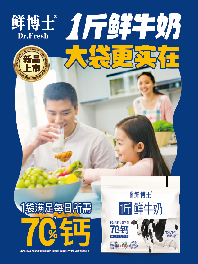 鲜博士一斤鲜牛奶上市啦!1袋即可满足每日所需70%钙