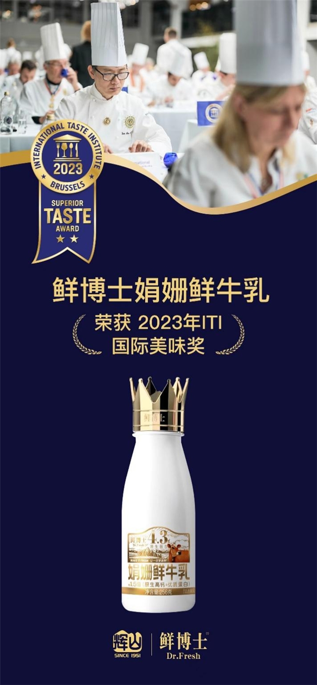 除了奶源品质与营养价值,口感是否鲜美、奶香是否纯正也是影响家长们选购鲜奶产品的关键。鲜博士4.3g娟姗鲜牛乳,不仅营养价值被誉为业内“天花板”,还曾荣获食品界“奥斯卡”Superior Taste Award美味奖二星奖章(最高奖项为三星奖章),其美味度得到了业内外的高度认可。鲜博士3.7g娟姗鲜牛乳,只用珍贵娟姗牛乳制作,全程冷藏锁鲜,致力于还原牛乳本来的醇厚味道,喝起来滴滴香浓、美味回甘。