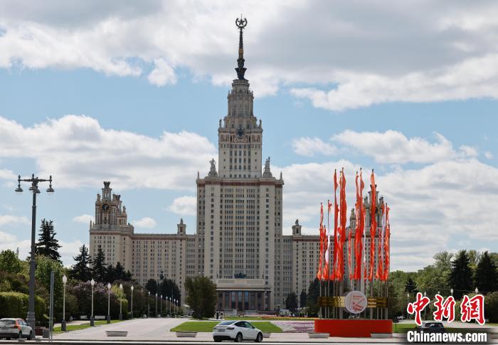 当地时间5月6日,莫斯科大学景色宜人。中新社记者 盛佳鹏 摄