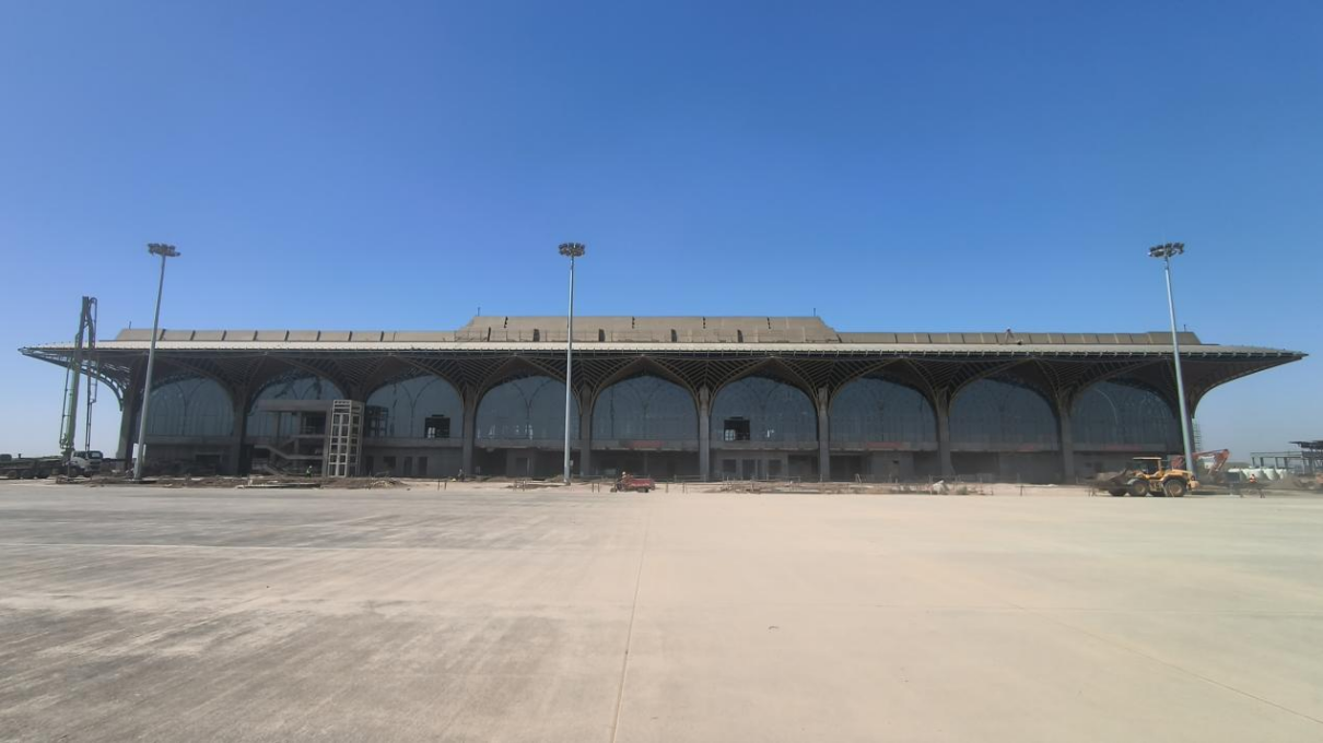 纳西里耶是伊拉克南部济加尔省首府。纳西里耶国际机场项目是中国企业在伊拉克战后承建的首个机场项目。今年4月30日,纳西里耶国际机场主航站楼外立面实现全面封闭,标志着项目建设进入冲刺阶段。主航站楼设计融合椰枣树元素与现代建筑美学,成为当地标志性建筑。目前,室内装修与机电安装工作正加速推进。