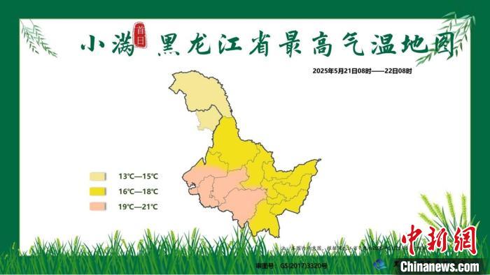 2025年小满节气首日黑龙江省最高气温地图(2025年5月21日8时至22日8时)。黑龙江省气象局供图