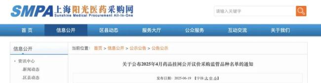 6月19日,上海阳光医药采购网发布《关于公布2025年4月药品挂网公开议价采购监管品种名单的通知》,10个药被纳入重点监控(具体名单见文末附件)。