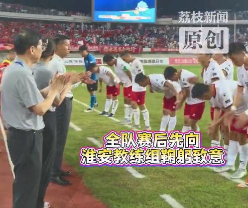 7月6日晚,苏超第6轮淮安0比0常州,常州队拿到苏超第1分。赛后常州队先向淮安教练组鞠躬,随后与常州球迷一起激情庆祝。常州队队长表示还得再努力,还是希望拿到3分。