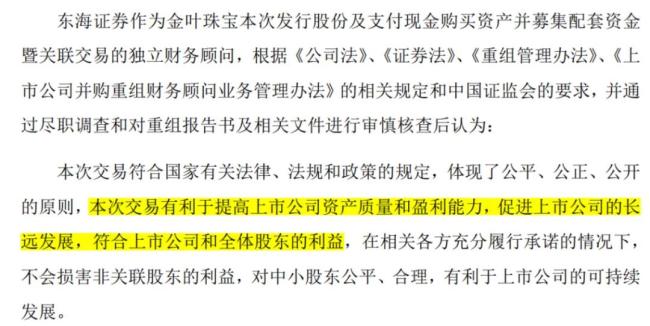 交易过程中,东海证券经过所谓的“尽职调查”和“审慎核查”,出具了“本次交易有利于提高上市公司资产质量和盈利能力,符合上市公司和全体股东的利益”的结论性意见。