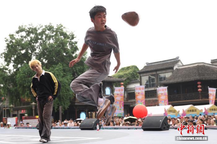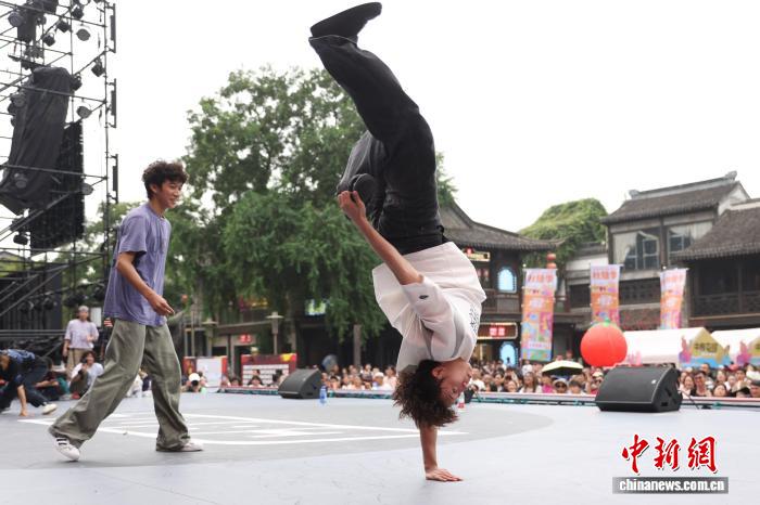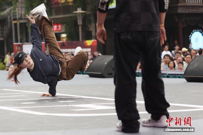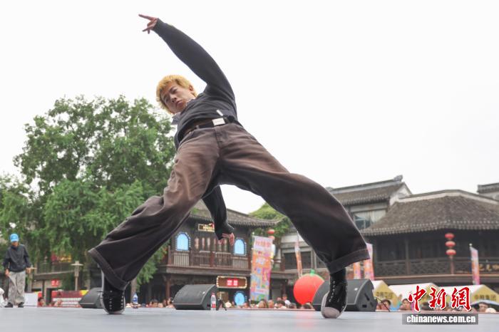 9月14日,2025年中国街舞联赛(南京站)圆满收官,来自全国各地的近400名舞者轮番登台,舞动青春。最终,历经资格赛、循环赛、淘汰赛的层层筛选,王羽凡获得女子公开组冠军,李后桦获得男子公开组冠军。图为选手在舞台上展示舞技。中新社记者 泱波 摄