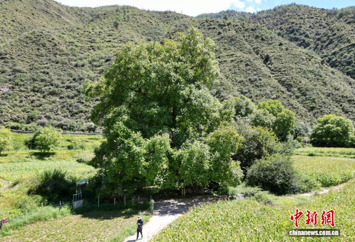 图为千年“胡桃王”全貌。(无人机照片)中新社记者 张浪 摄