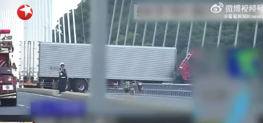 日本长崎:货车撞上大桥护栏司机疑坠海身亡