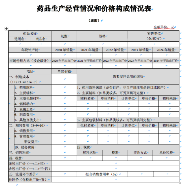 健识局发现,表格要求填报的内容巨细无遗,涵盖2020年至2024年产品销量、平均出厂价,制造成本、期间费用、销售利润等。