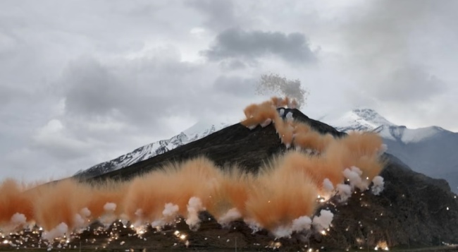 始祖鸟与蔡国强联合在喜马拉雅山脉点燃大型烟花“升龙”。山脊即龙脉,作品与自然结合,呼应在地文化中“龙象征吉祥与祈福”的寓意;“升龙”烟花的飞升姿态不仅体现了艺术家对天地、宇宙的追问,也传递着喜马拉雅深处世代相承的“生生不息”的向上精神。