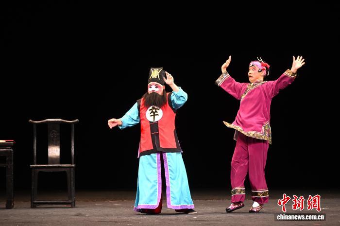 9月23日,福建福州,福建政和县杨源四平戏剧团的演员正在表演四平戏《白兔记·磨房会》选段。福建传统折子戏展演正在福州举行,当天,南词戏、三角戏、四平戏、梅林戏等福建稀有剧种集中上演。中新社记者 吕明 摄