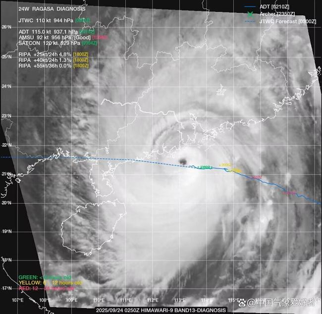 尽管接近珠三角时桦加沙的云系形态受到部分地形干扰,但其台风眼依然坚实稳定,内部结构紧凑,能量快速收缩。卫星云图显示,眼墙区域持续爆发冷对流,云顶温度骤降至极低值,表明它仍保持极高强度和超强台风级别的能量输出。