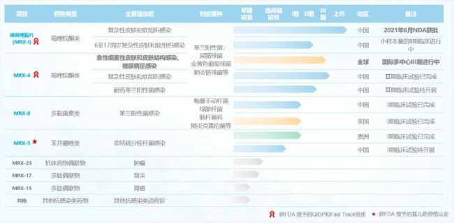 此外,其核心产品MRX-4的新药申报申请已取得国家药监局受理,还有多款抗菌新药处于临床开发阶段,形成较为丰富的产品管线。
