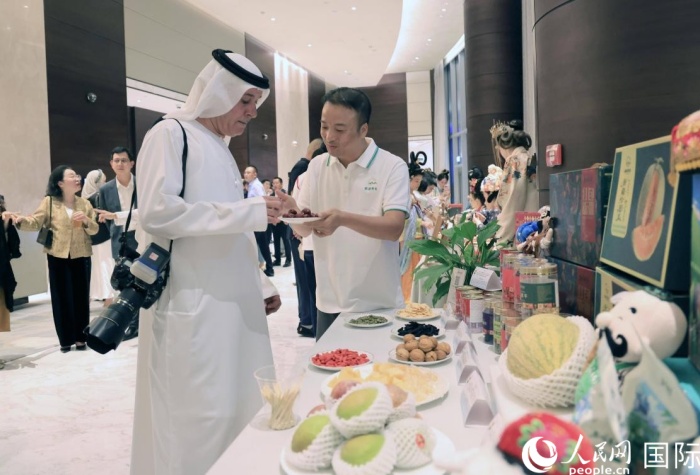 人民网迪拜9月26日电 (记者管克江) 品一杯云南咖啡、尝一口新疆大枣、做一把中式团扇……9月25日,中国驻迪拜总领事馆举办庆祝中华人民共和国成立76周年暨中秋招待会,会前的中国传统文化体验活动引人入胜,吸引众多来宾参与。