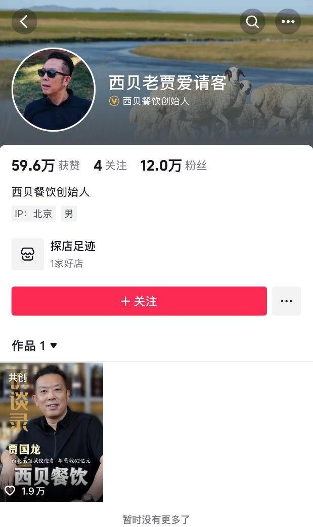 此前有记者发现,西贝餐饮创始人贾国龙的抖音账号仅保留了一条公开视频作品,发布于2024年9月30日。此外,他的小红书账号和微信视频号均被清空,微博账号则多为2023年及之前的内容。对于这些变化,西贝餐饮集团客服人员表示并不清楚具体情况。