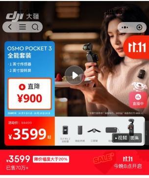 记者了解到,本次大疆降价涉及云台相机、运动相机、航拍器等多款产品。以小美购买的Pocket 3为例,降价幅度约为700元。小美表示,这几天不断刷到大疆降价的消息,让她感到非常烦躁。