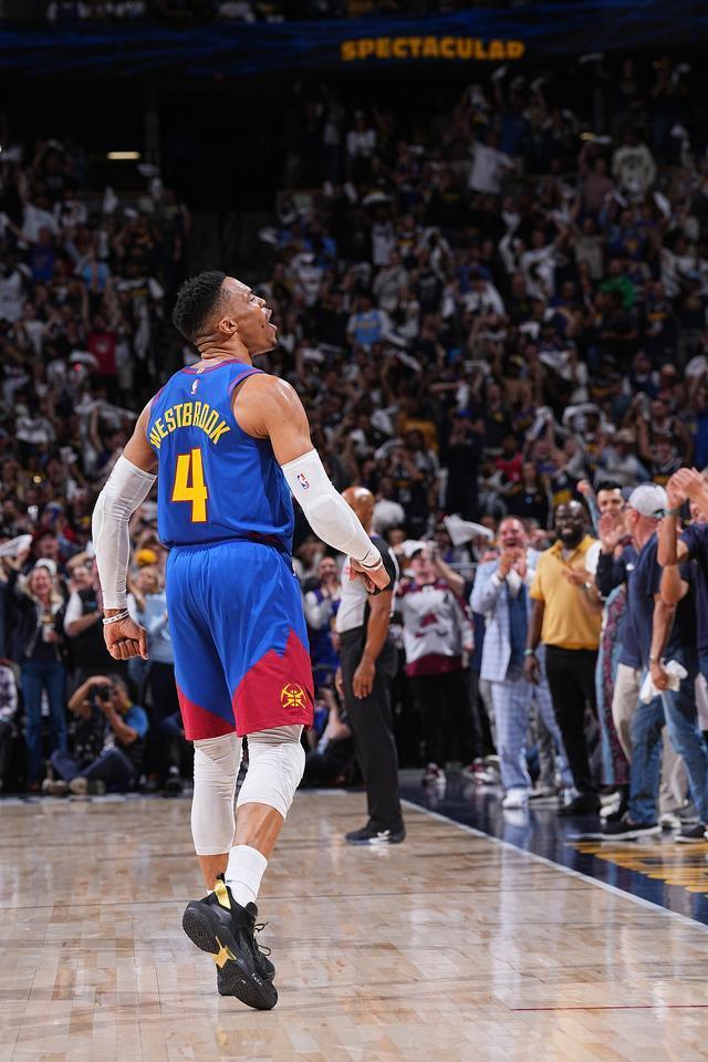 上赛季,威少为丹佛掘金队出战了75场常规赛,场均上场27.9分钟,贡献13.3分、4.9个篮板和6.1次助攻,还有1.4次抢断。在季后赛中,他出场13次,场均上阵24.1分钟,拿到11.7分、3.7个篮板和2.6次助攻。