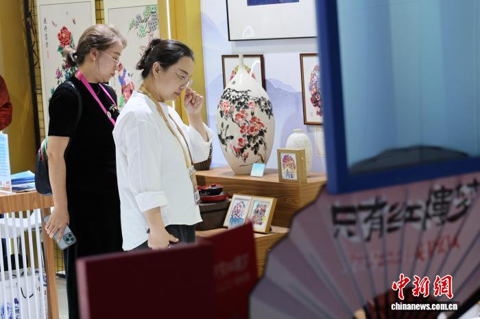 10月16日,观众在第十届中国国际版权博览会暨2025国际版权论坛现场了解展品。张孝鹏 摄