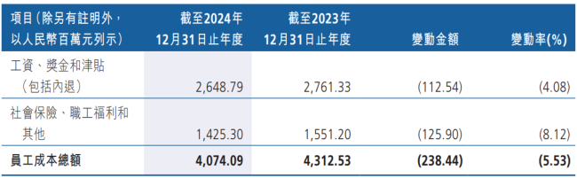 2024年,该行员工总薪酬40.74亿元,同比下降5.53%,连续两年下降。以期末员工总数13399人计算,人均薪酬约30.16万元。
