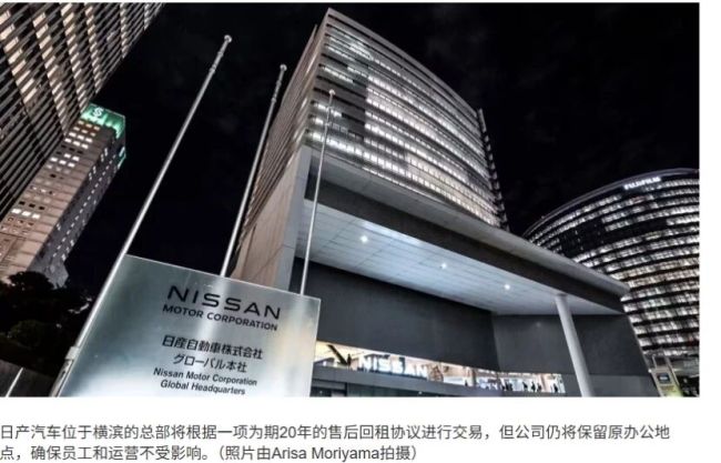 在五月就提出的卖楼计划,这次真的要实行了。据《日本经济新闻》报道,陷入经营困难的日本汽车制造商日产公司11月6日宣布,将出售位于横滨的总部大楼,价格为970亿日元(约合45亿元人民币)。这些资金将用于改善公司的财务状况。据报道,出售手续将于今年12月完成,出售后日产公司仍将继续使用总部大楼,但需按期缴纳租金。