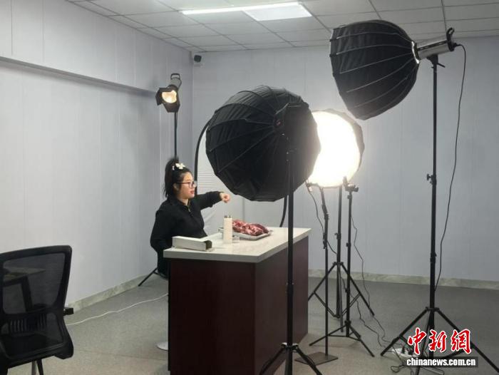 “95后”宝妈孙泽敏在直播间销售牛肉产品。陈宛婷 摄