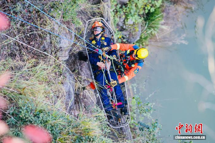 图为消防人员安全转移“伤员”。杨璇 摄