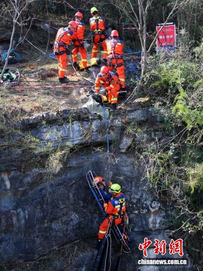图为活动现场模拟垂直救援。袁唐伟 摄