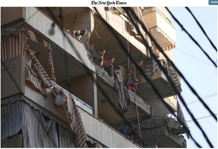 塔巴塔拜公寓遭空袭现场。图/《纽约时报》