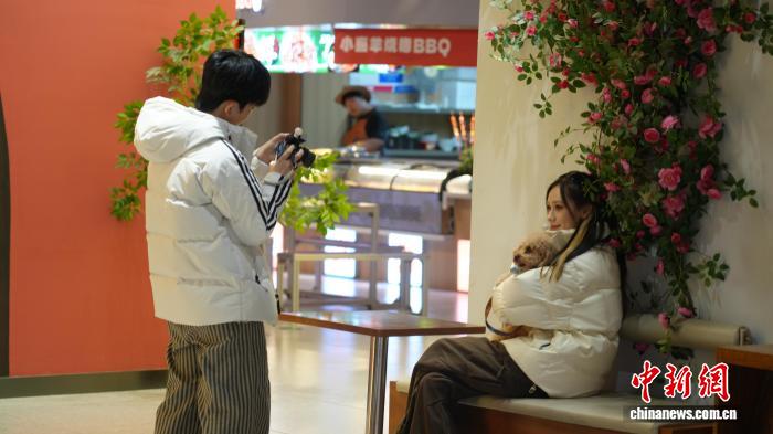 图为11月27日,民众牵着宠物在“织音1953”遛弯。胡凯迪 摄