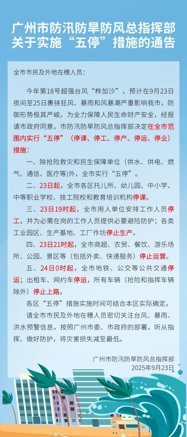 今年的全球风王“桦加沙”正在逼近我国。9月23日早晨5点,“桦加沙”已进入24小时警戒线,预计将于24日中午到晚上在广东沿海登陆。广东全面进入台风防御临战状态,多地预警升级并实施“五停”