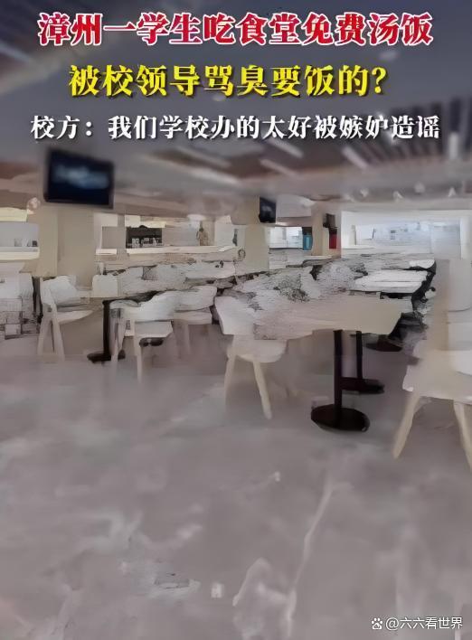 校方辟谣学生吃食堂免费汤饭被校长骂 坚决否认指控福建漳州正兴学校一名高三女生在食堂吃免费汤泡饭时,被校领导拍下照片并辱骂为“臭要饭的”。事件迅速引发广泛关注,网友们对学校管理层的教育方式提出质疑