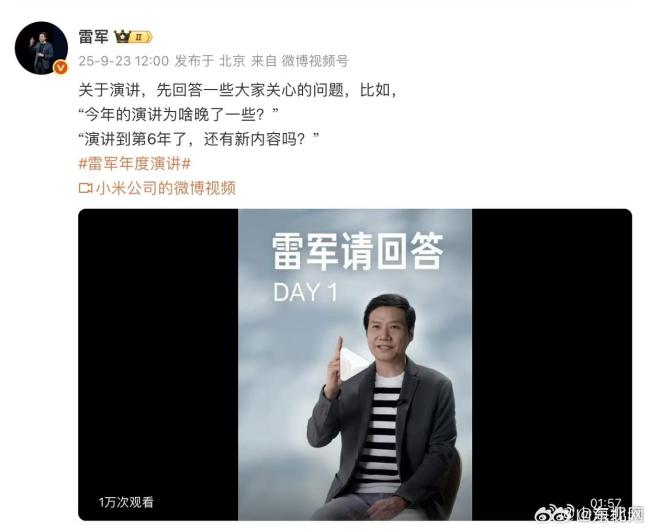 雷军回应演讲推迟原因 为蹭小米17流量昨日,2025雷军年度演讲正式宣布定档9月25日。消息一出,迅速登上多个平台的热搜榜单。今年的雷军年度演讲相比往年有所推迟。在小米官方发布的短视频中,雷军解释了推迟的原因:为了蹭自家小米17的流量
