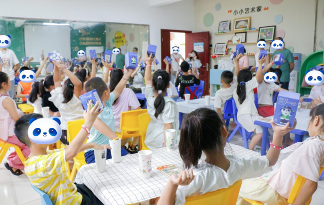 9月13日,成都玉成社区壹基金儿童服务站内暖意融融。新茶饮品牌茶百道为孩子们送去爱心物资,还联合志愿者开展“公益绘画小课堂”。