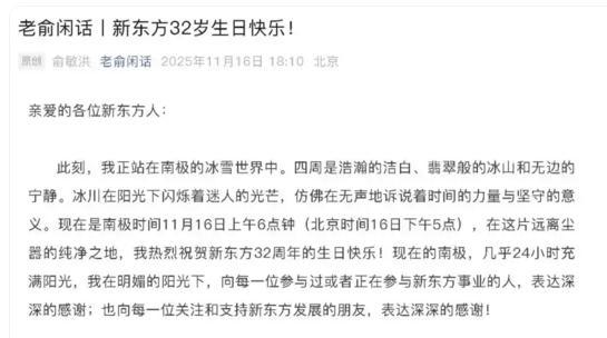 员工去南极能否救得了俞敏洪翻车 沟通落差引争议11月16日,新东方迎来32周年纪念日,创始人俞敏洪身处南极向全体员工发出一封全员信。这封本是庆祝公司生日、激励员工的公开信却引发诸多争议。有网友认为,作为老板,少点鸡汤,多点实际行动,给员工加薪才是最好的激励