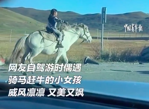 网友川西偶遇骑马赶牛小女孩 威风凛凛又美又飒近日,四川阿坝,网友自驾游偶遇骑马赶牛的小女孩,威风凛凛,又美又飒。...