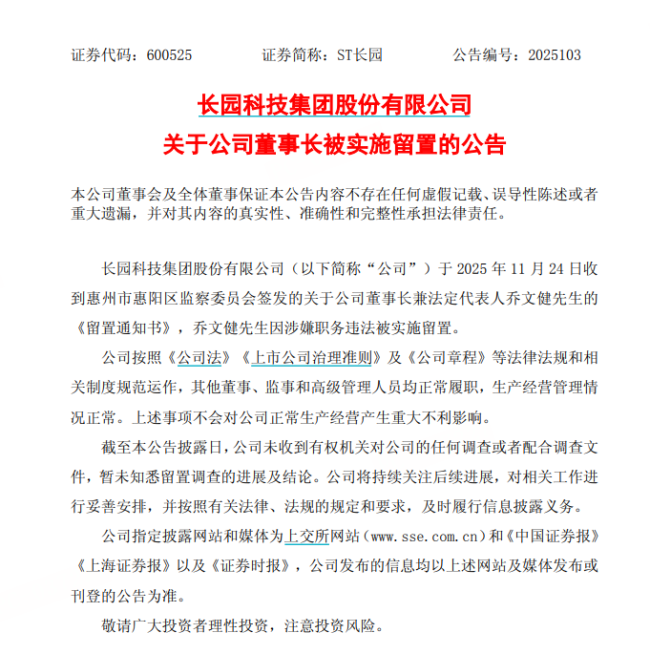 刚上任2个月,A股80后董事长被留置ST长园董事长兼法定代表人乔文健因涉嫌职务违法被留置,这让本就处于治理困境中的ST长园再添变数。