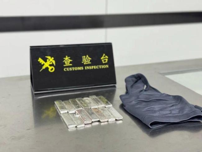 海关查获旅客藏匿足银14块 巧妙藏匿企图过关近日,罗湖海关查获一名进境旅客藏匿的足银14块,总重达1965.69克。当天,海关关员在对进境旅客进行监管时,注意到一名女性旅客神色紧张、步伐僵硬,且未向海关申报。随后,关员对该旅客进行了拦截检查