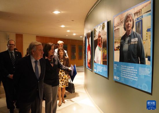 庆祝联合国成立80周年全球图片展在纽约开幕10月20日,在位于纽约的联合国总部,联合国秘书长古特雷斯(前)参观“共栖生命,共享未来”庆祝联合国成立80周年全球图片展。新华社记者张凤国摄 新华社联合国10月20日电(记者潘云召)“共栖生命