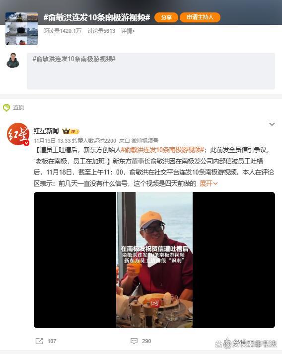 俞敏洪为何被贴老登标签 时代的敏感与鸿沟南极的风原本只是风,落在冰川上显得辽阔,在心里却带来宁静。这封来自世界尽头的信回到现实后,像一束远方的亮光,照亮了许多人未曾说出口的日子