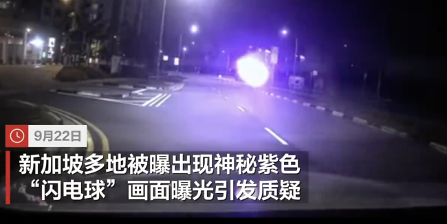 新加坡多地现紫色闪电球?官方回应 非气象现象引起9月22日,新加坡多地出现了神秘紫色“闪电球”,相关画面曝光后引发了广泛质疑。19日,有网民拍到一个紫色球体在路上弹跳,并在发出四次“闪电”噼啪声后消失。20日,又有网民称目击到类似球体盘旋并发出明亮光芒,身后留下一条烟雾尾迹
