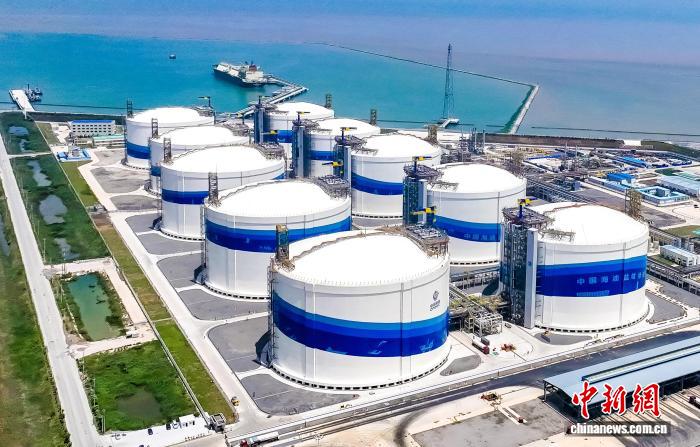中新网盐城9月19日电(记者 邓敏 谷华)蔚蓝的天空下,10个白色的大型液化天然气储罐整齐屹立在黄海边,液化天然气运输船正进行接卸作业,阵阵潮水拍打着堤岸……18日下午,记者跟随“活力中国调研行”江苏主题采访团走
