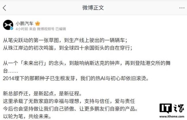 小鹏汽车广州新总部启用 新征程启航小鹏汽车今日宣布新总部在广州正式启用,标志着公司进入新的发展阶段。小鹏汽车董事长何小鹏提前一天公布了这一消息。他透露,新总部占地近40万平方米,包括8万平方米的公园。其独特的X造型设计和3个科技销售展厅引人注目