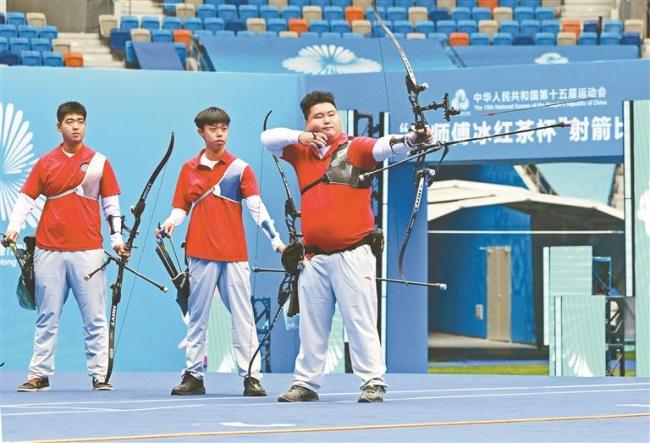 广东男团十五运铜牌 主场奋战终获佳绩11月19日,十五运会射箭男子反曲弓团体铜牌赛在深圳体育中心体育场结束。深圳籍运动员林良文与队友袁权森、刘浩然组成的广东队,在铜牌争夺战中以5∶4战胜湖北队,为广东代表团赢得一枚宝贵的铜牌。这是广东射箭队在本届全运会射箭项目中的首枚奖牌