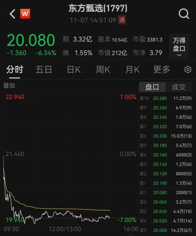 东方甄选股价跌超6% 创始人离职影响市场信心11月7日,东方甄选股价低开并迅速下跌,截至发稿时跌幅超过6%,报价20.080港元。此前一天,俞敏洪在社交媒体上确认孙东旭已从东方甄选离职。俞敏洪表示,他和孙东旭是东方甄选的创始人。最近,孙东旭因个人原因提出不再继续工作