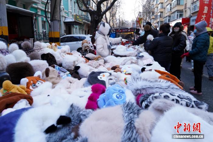 黑龙江哈尔滨:气温走低催生“暖经济”12月2日,黑龙江哈尔滨,游人选购保暖衣物。当日,黑龙江哈尔滨最高气温今冬首次降到-10℃以下 ,在哈尔滨红专街早市,棉帽子、大花袄等保暖物品摆上街头,游人纷纷选购。中新社记者 赵宇航 摄