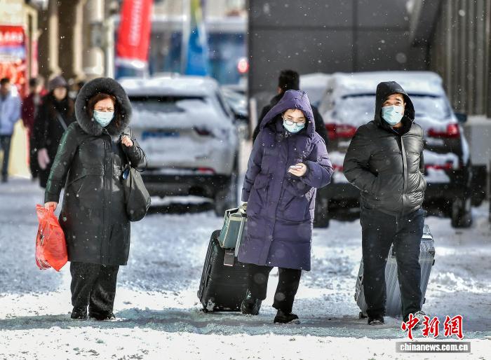 寒潮来袭 乌鲁木齐降雪降温12月11日,一夜降雪后,新疆乌鲁木齐市气温骤降10℃至15℃左右,外出市民穿着厚衣御寒。受强冷空气影响,12月10日该市出现强降雪及大风天气,气象部门相继发布寒潮和暴雪预警信号。中新社记者 刘新 摄